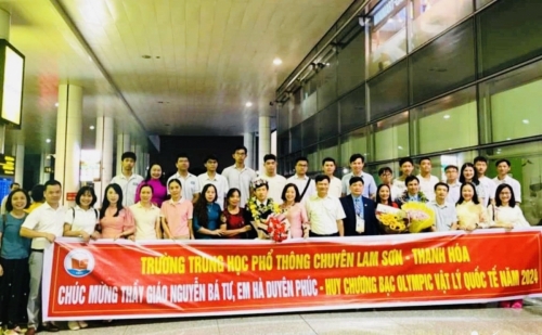 Các thầy cô, phụ huynh Trường THPT Chuyên Lam Sơn đón thầy trò thầy Nguyễn Bá Tư sau kỳ thi Olympic Vật lý quốc tế (IPhO) năm 2024 |