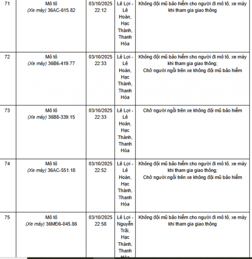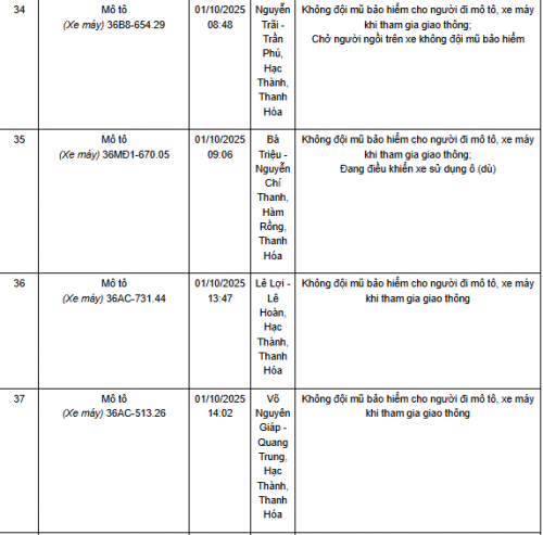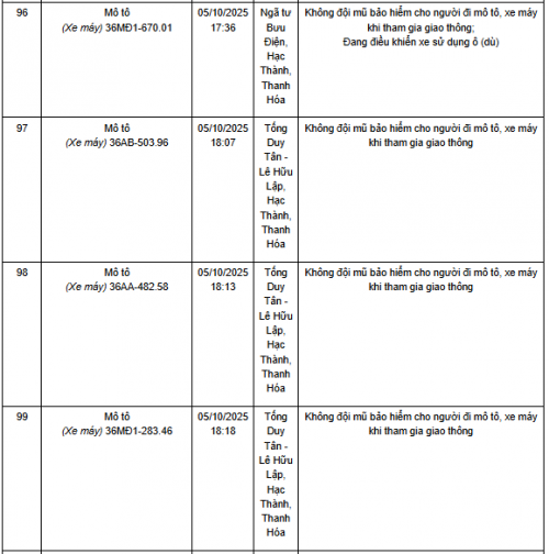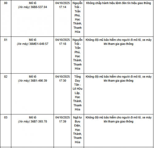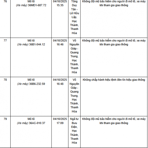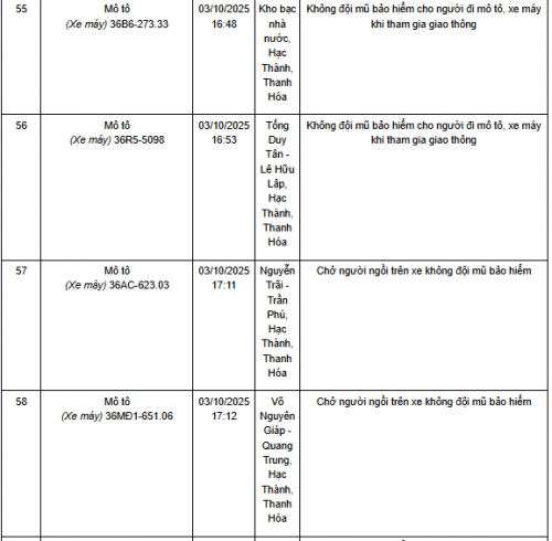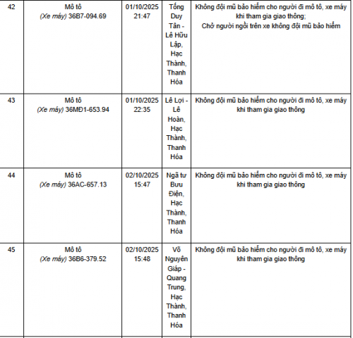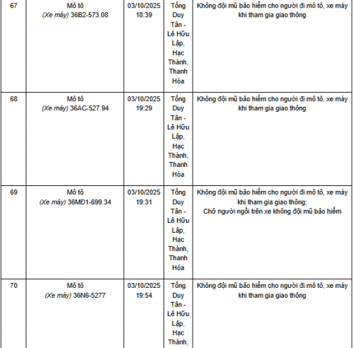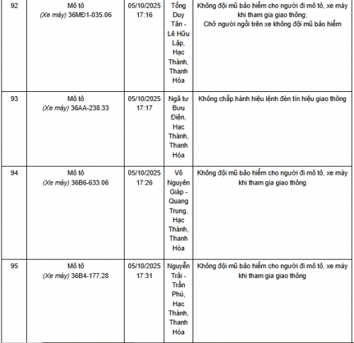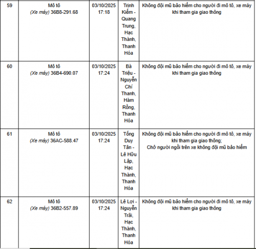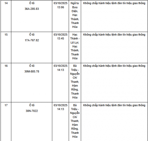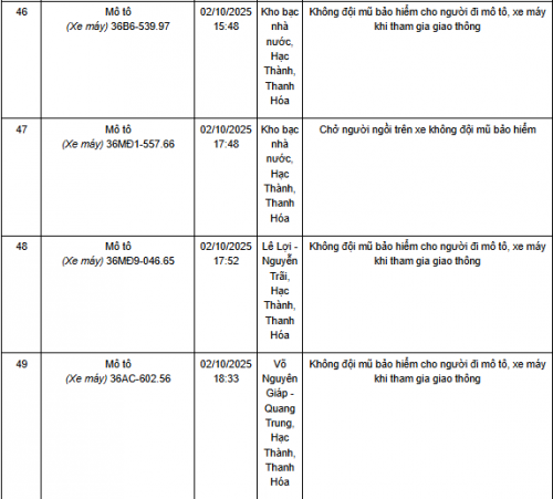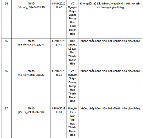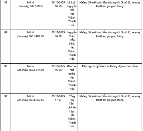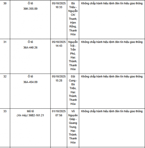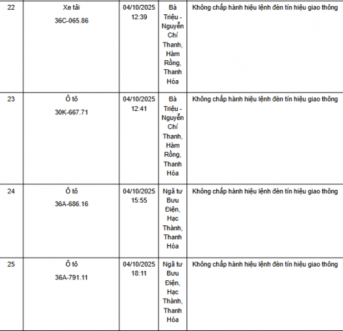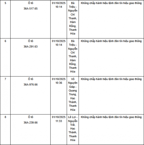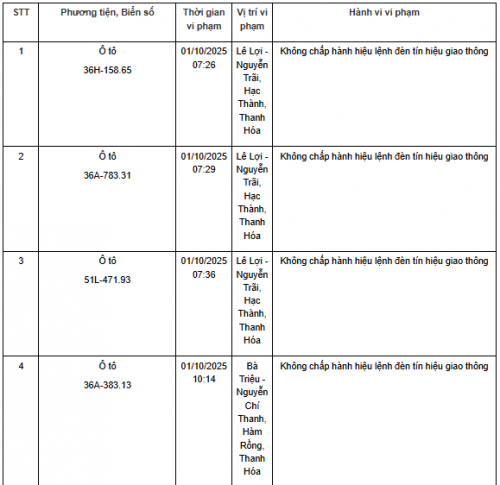 Quá thời hạn trên, chủ phương tiện, tổ chức, cá nhân có liên quan đến vi phạm hành chính không đến giải quyết hoặc Phòng CSGT Công an Thanh Hóa chưa nhận được thông báo kết quả giải quyết, xử lý vụ việc sẽ tiến hành gửi thông báo cảnh báo phương tiện giao thông vi phạm cho cơ quan đăng kiểm./.