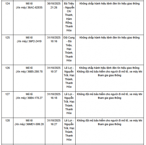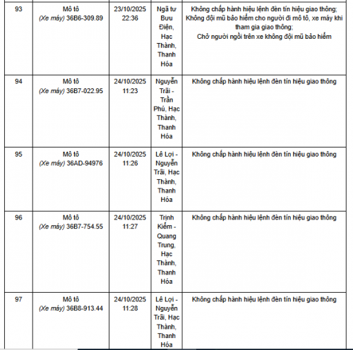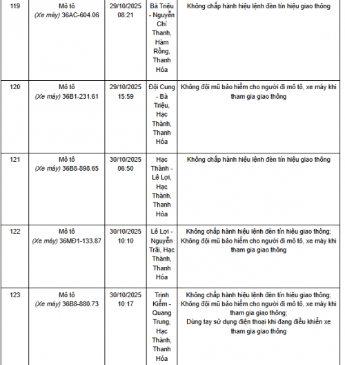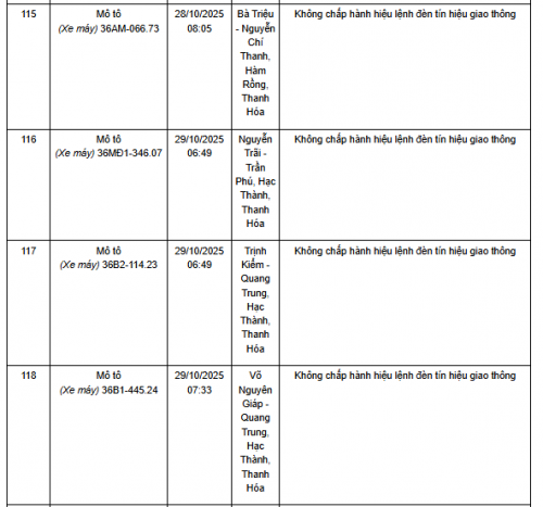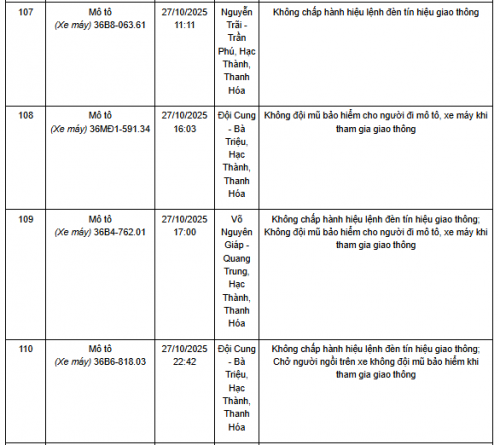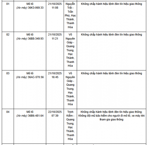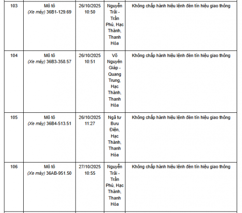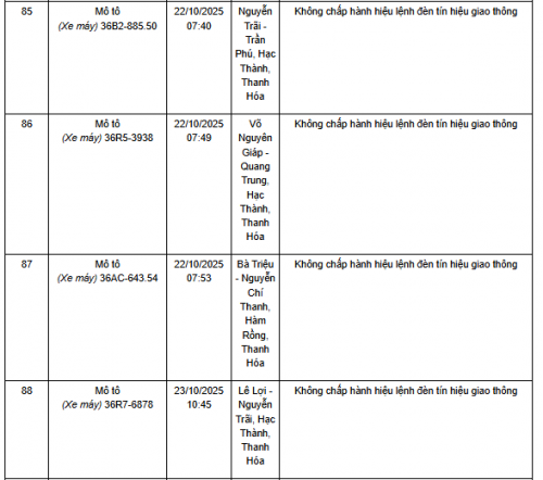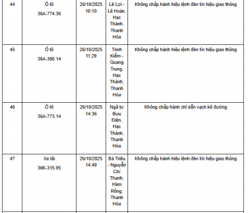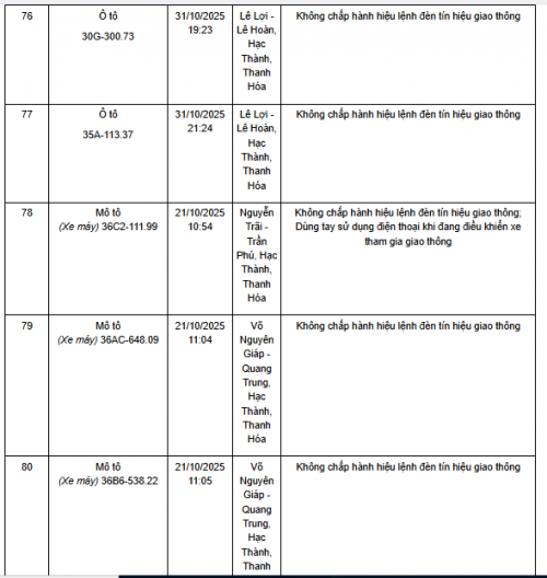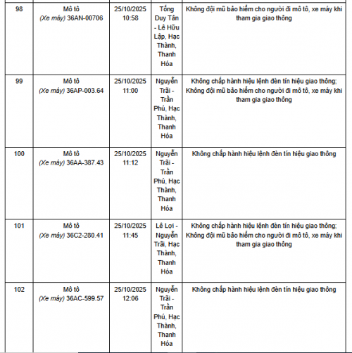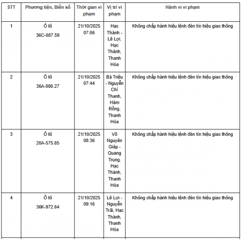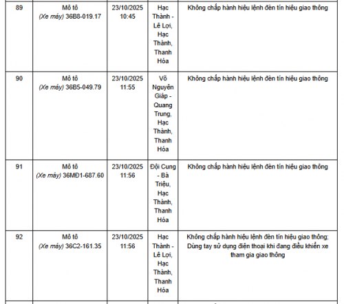 Quá thời hạn trên, chủ phương tiện, tổ chức, cá nhân có liên quan đến vi phạm hành chính không đến giải quyết hoặc Phòng CSGT Công an Thanh Hóa chưa nhận được thông báo kết quả giải quyết, xử lý vụ việc sẽ tiến hành gửi thông báo cảnh báo phương tiện giao thông vi phạm cho cơ quan đăng kiểm./.