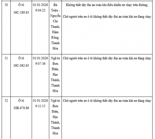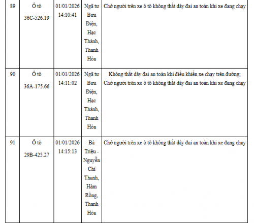 Quá thời hạn trên, chủ phương tiện, tổ chức, cá nhân có liên quan đến vi phạm hành chính không đến giải quyết hoặc Phòng CSGT Công an Thanh Hóa chưa nhận được thông báo kết quả giải quyết, xử lý vụ việc sẽ tiến hành gửi thông báo cảnh báo phương tiện giao thông vi phạm cho cơ quan đăng kiểm./.