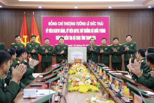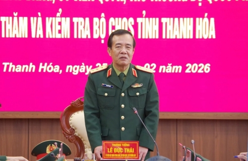 Sau khi nghe báo cáo, đồng chí Thứ trưởng Bộ Quốc phòng ghi nhận, biểu dương, đánh giá cao tinh thần, trách nhiệm và kết quả đạt được trên các mặt công tác về nhiệm vụ quân sự, quốc phòng, công tác biên phòng của Bộ CHQS tỉnh Thanh Hóa trong năm 2025 và 2 tháng đầu năm 2026.