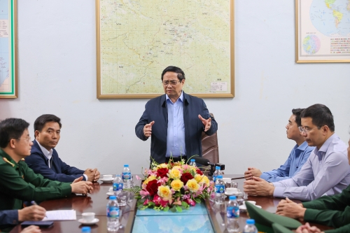 Thủ tướng Phạm Minh Chính làm việc với Đồn biên phòng Yên Khương - Ảnh: VGP/Nhật Bắc |