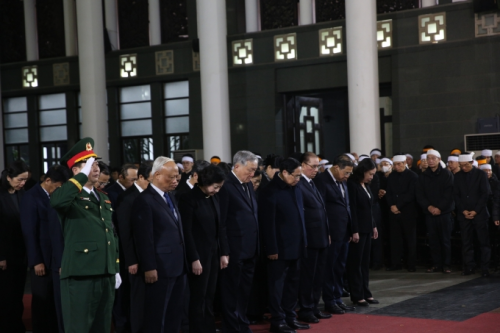 Thủ tướng Phạm Minh Chính dẫn đầu đoàn đại biểu Ban Chấp hành Trung ương Đảng vào viếng và chia buồn cùng gia quyến. Tổng Bí thư Tô Lâm, Chủ tịch Quốc hội Trần Thanh Mẫn, Thường trực Ban Bí thư Trần Cẩm Tú gửi vòng hoa viếng.