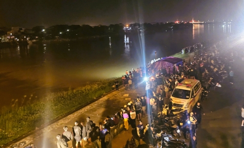 Rất đông người dân kéo tới khu vực cầu Đò Quan xem lực lượng chức năng tìm kiếm |