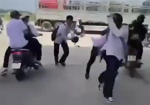 Nhóm học sinh Trường THPT Đặng Thai Mai đánh nhau khiến một em tử vong. |