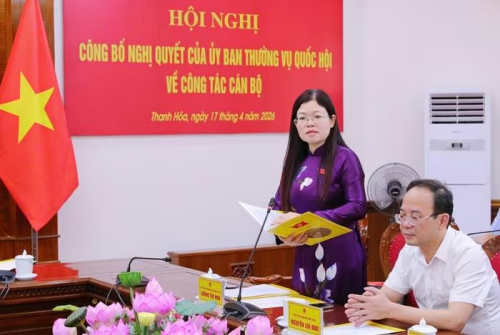 Sáng 17-4, Đoàn đại biểu Quốc hội (ĐBQH) tỉnh Thanh Hóa đã tổ chức hội nghị công bố Nghị quyết của Ủy ban Thường vụ Quốc hội về công tác cán bộ.