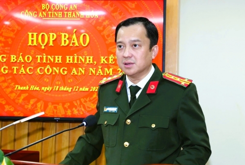 Chiều 18-12, Công an tỉnh Thanh Hóa đã tổ chức họp báo thông tin tình hình, kết quả các mặt công tác công an năm 2025, nhiệm vụ công tác trọng tâm năm 2026. Đại tá Trần Thái Quang Hoàng, Phó Giám đốc Công an tỉnh Thanh Hóa, dự, chỉ đạo buổi họp báo.
