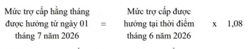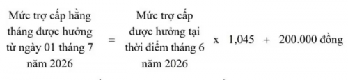 Mức trợ cấp hằng tháng được hưởng từ ngày 1/7/2026 tính theo công thức sau: