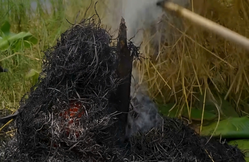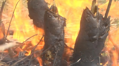 Chỉ cần xiên cá bằng cành cây hoặc cây tre, rồi nướng trực tiếp bằng rơm hoặc củi khô. |