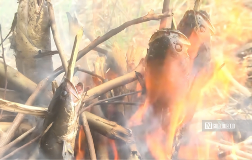 Người ta dùng cây tre xiên từ miệng xuống đuôi, cắm xuống đất rồi phủ rơm khô lên, châm lửa. Khi ngọn lửa rơm tàn, cũng là lúc mùi thơm của cá nướng lan tỏa khắp khoảng đồng chiều.