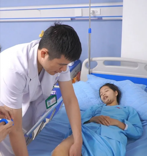 Em Nguyễn Thị Hoài đang được các bác sĩ chăm sóc tại bệnh viện |