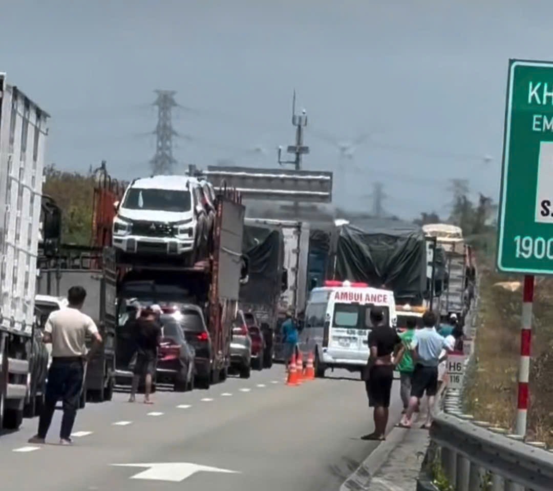 Thời điểm xảy ra tai nạn, xe ô tô con đang dừng trên làn đường ngoài của tuyến cao tốc, trên xe có 3 người.