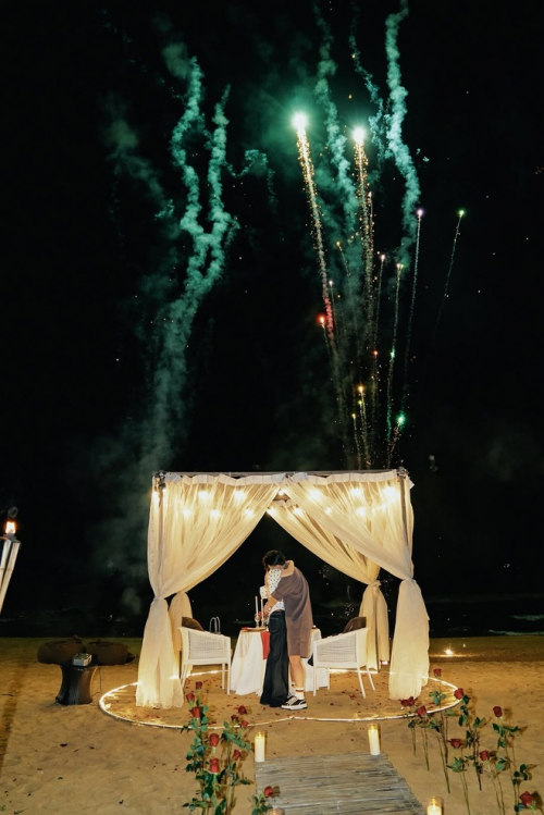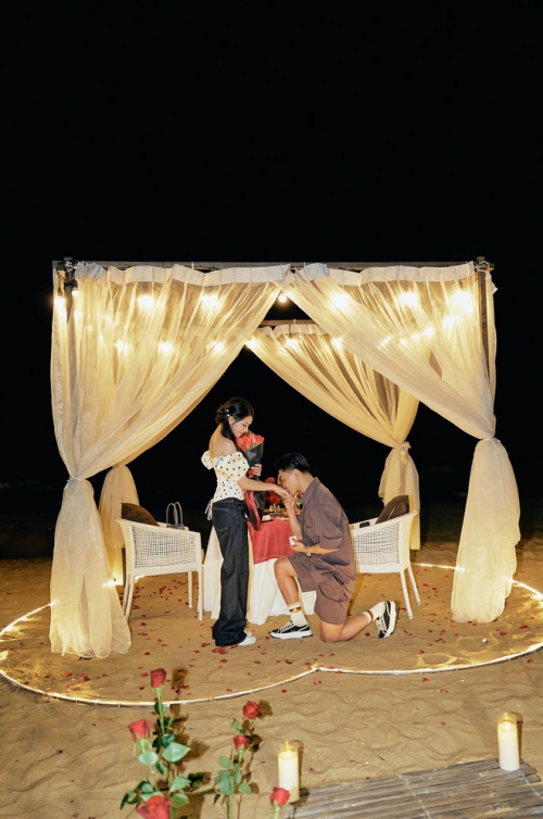 Văn Thanh cầu hôn bạn gái Bích Hạnh bên bờ biển lãng mạn. |