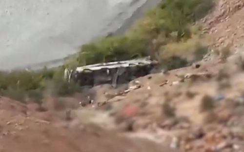 Những hình ảnh về vụ tai nạn cho thấy chiếc xe buýt nằm nghiêng dưới vực. Có 60 hành khách trên xe buýt khi nó va chạm với xe tải màu trắng, khiến chiếc xe lao ra khỏi đường vào sáng sớm 12/11.
