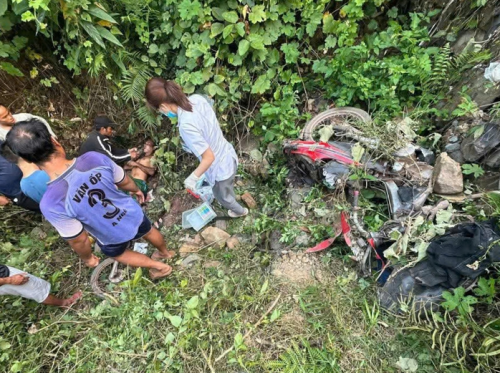 Tại hiện trường, bà Lê Thị H. (SN 1976) bị tử vong, ông Hồ Văn Khết (SN 1974; là vợ chồng, ngụ tại thôn A Đeng, xã La Lay) bị thương nặng. Trong khi đó, chiếc xe máy của 2 vợ chồng này nằm dưới vực sâu, bị hư hỏng nặng.
