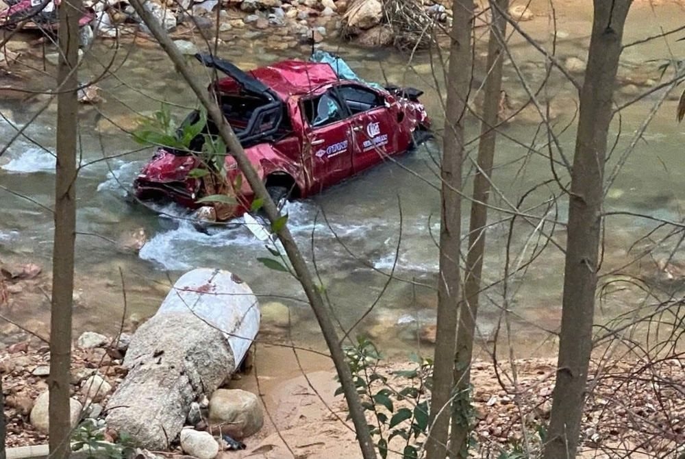 Cú va chạm mạnh khiến xe bán tải bị hất văng qua lan can cầu, rơi xuống suối phía dưới. Thời điểm xảy ra tai nạn, trên xe bán tải có 4 người. Một nạn nhân bị thương đã được lực lượng chức năng và người dân nhanh chóng đưa đi cấp cứu.